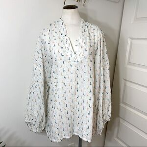 LOU & Grey Flowy Breezy Off White Boho Trendy Oversize Blouse Balloon Sleeves XL