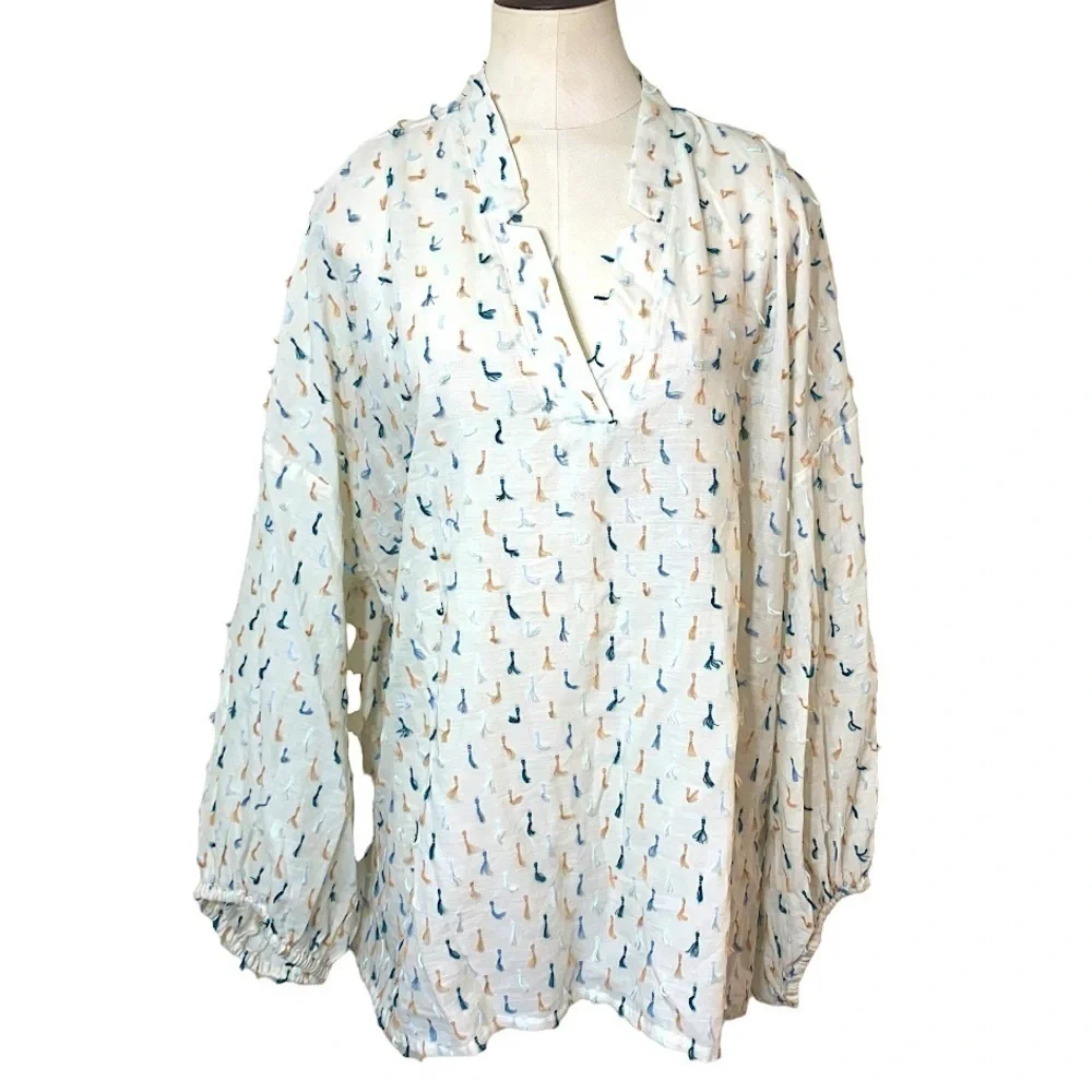 LOU & Grey Flowy Breezy Off White Boho Trendy Oversize Blouse Balloon Sleeves XL
