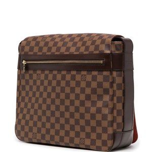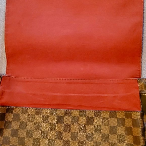 Bastille Messenger By Louis Vuitton Crafted In Brown Damier Ebene Printed Coated Canvas With An External Zip. It Features A Comfortable And Adjustable Wide Canvas Shoulder Strap With The Louis Vuitton Logo. The Top Flap Reveals An Interior Lined With Red Canvas And Housing One Open Pocket