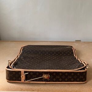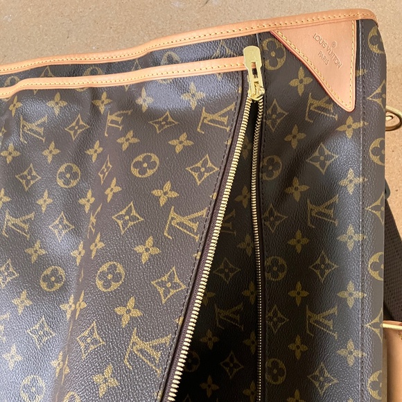 Excellent condition, some very minor scratches on the leather trim corners, no oxidation to hardware, interior is in PERFECT condition, comes with brand new, leather ID tag, 3 gold tone hangers, dustbag, all gold tone hardware, zippers and clips, brown coated canvas with Monogram print, beige Vachetta leather trim, single rolled handle with detachable shoulder strap, tone-on-tone lining with 3 pockets, unisex, Made in France 🇫🇷 , height is 120 cm, width is 60 cm, depth 8/55 cm, handle height 5 cm, shoulder strap height 40 cm, Authenticity Code SP0023
