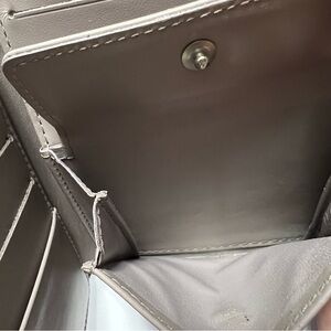 Good condition - signs of wear as pictured. Some stretch on the elastic. Large wallet with multiple compartments for cards, bills, and coins. Color is more like lilac.