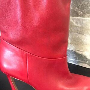 A graceful pointed toe balances the slim setback heel of this streamlined knee-high boot made from supple leather.