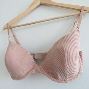 LOUNGE T-Shirt Bra in Ribbed Taupe Nude Comfort Neutral Minimalist - Size 34F