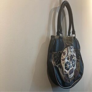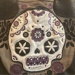 LOUNGEFLY Logo Dia De Los Muertos Day of the Dead Bag Tote Purse Handbag. In excellent condition. Unique and fun. Vegan leather. Fun lining. Witchycore.