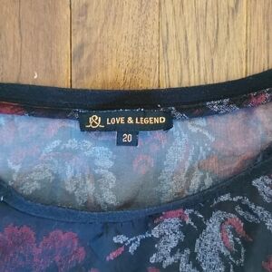 LOVE & Legend Red Floral Print Sheer Top Plus 20