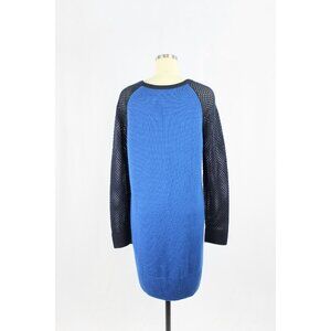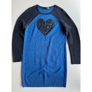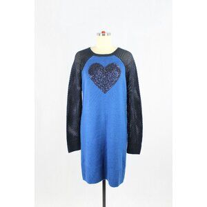 LOVE MOSCHINO Blue Wool Knit Sequin Heart Raglan Sleeve Sweater Dress, Size 44/L