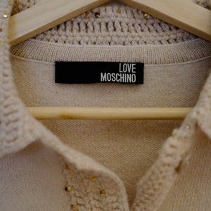 Love Moschino cream wool cardigan. Beautiful sequin details.