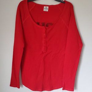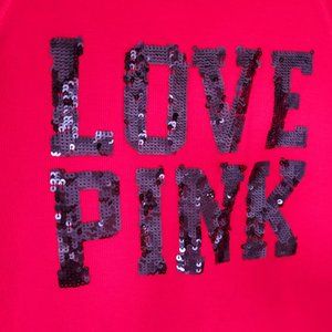 LOVE PINK Red Henley Short Top Jersey Knit Black Sequins Mini Waffle Layering