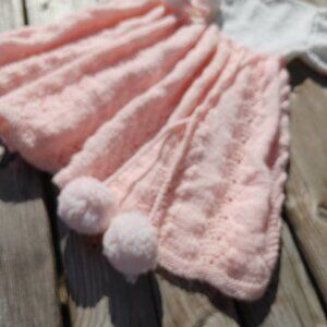 The cutest little crochet baby dress with pom pom detailing. Comes with an extra pom pom string.