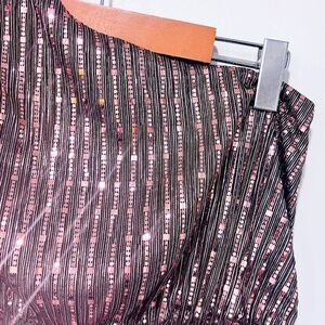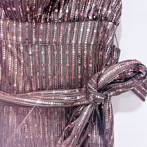 Turn heads in this dazzling golden sequin jumpsuit from Lovers + Friends. Featuring a one-shoulder neckline, belted waist, and wide-leg silhouette, it delivers the perfect balance of sophistication and sparkle. Ideal for holiday parties, galas, or any event where you want to shine.