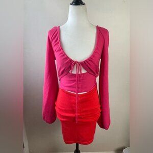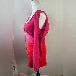 Lovers and Friends Zowie Drawcord Mini Dress in Orange & Magenta small NEW