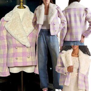 🆕 LOVESHACKFANCY 🧿 NWOT Dumont Faux Fur Collared Jacket, Lavender - Sz S