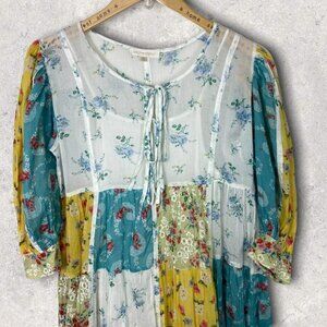LOVESHACKFANCY Patchwork Tiered Maxi Dress Bohemian Floral Print Bex Size Small