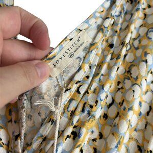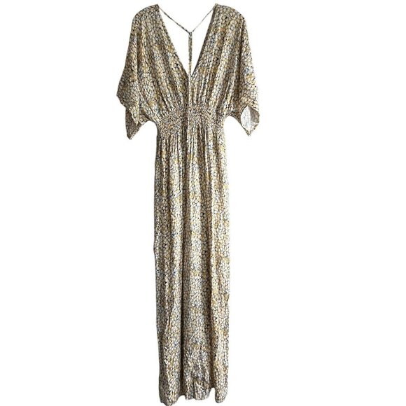 LOVESTITCH Short Sleeve Smocked Waist Yellow Geometric Maxi Dress Size US M/L