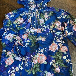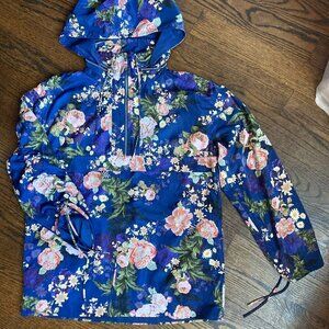 LPA BLUE FLORAL ANORAK WATERPROOF PULLOVER ZIP UP HOODED JACKET 360 OUTDOOR REVOLVE OVERSIZED FIT PERFECT FOR THE SPRING.