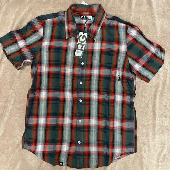 LRG Men’s button down Short sleeve Plaid pattern New with tags Size medium