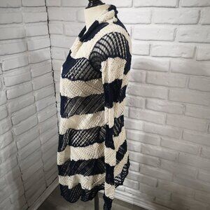 LRL Lauren Jeans Co. Ralph Lauren Ladies Size Small Navy & Beige Open Cardigan