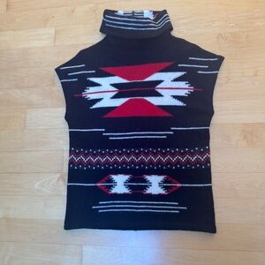 LRL Lauren Jeans Wool Aztec Design Sleeveless Turtleneck Pullover Sz.M