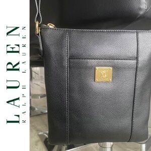 Authentic LAUREN Ralph Lauren Black textured 100% leather shoulder bag