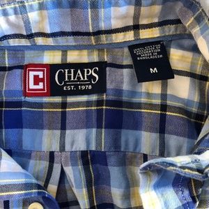 Chaps Medium LS shirt cotton in good used condition - blue with a thin line of yellow