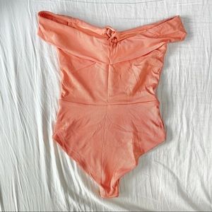 L*SPACE Off-Shoulder Salmon Colour Rib One Piece