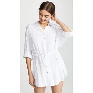L*SPACE Pacifica White Rayon Button Up Shirt Dress Tunic Cover-Up, Size XS/S
