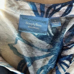 [L]Simply Vera by Vera Wang Blue Floral LS Shirt Blouse with Sheered Sleeves