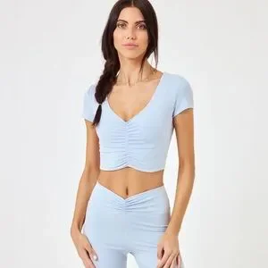 L*Space Blue Ruched Crop Top