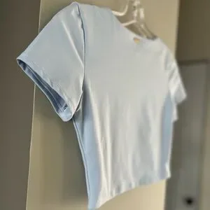 The feel of this short-sleeve crop top is beyond smooth & soft. Extremely flattering & supportive as a casual lifestyle top or for yoga pilates or working out at the gym.