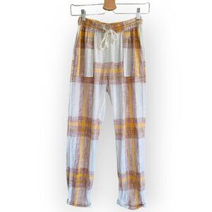 L*Space Cream Plaid Stretch-Waist Pants XS