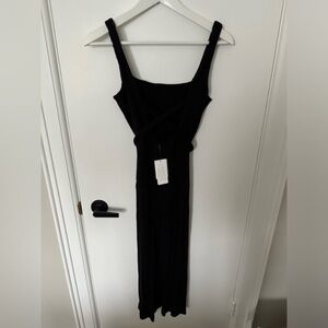 New with tags! Versatile and oh-so-comfy, the Palm Beach dress was made to be worn everywhere. A body-hugging silhouette crafted from super-soft ribbed fabric is the perfect blend of cozy and chic. Flattering details include a wrap-around waist tie and crisscross strap detail in back. Super-soft ribbed fabric Wrap-around waist tie Crisscross strap detail in back Side slip 95% Viscose, 5% Spandex