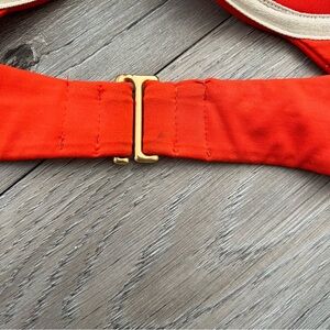 Vibrant red-orange bikini top. Strapless and chic. Perfect for beach days.