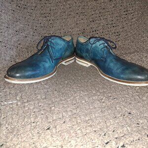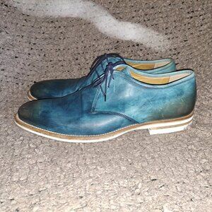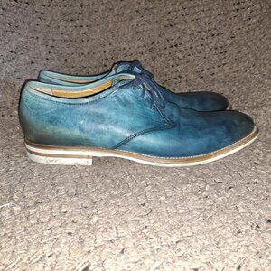 LUCA DEL FORTE-Distressed Teal/Green/Blue Leather Lace-Up Derby-Sz 13-Excellent