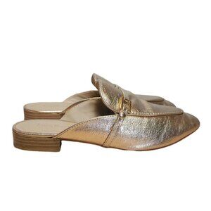 LUCA FERRI Rose gold, all man made, block 0.5" heels, mules, size 7. Great pre-loved condition, little bit of creases but otherwise no major flaws!
