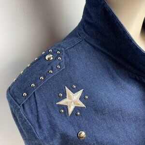 LUCILLE FAUCHER Desogner VTG 80’s 90’s Midi Jeans Jacket Dress Studded Star Embroided 10