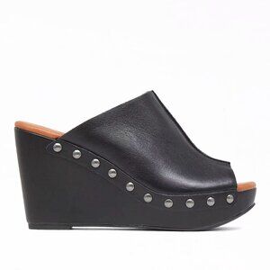 LUCKY BRAND Black Leather Mule Wedge Clog Sandal