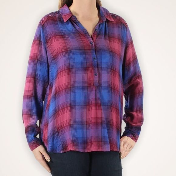 Lucky Brand plaid half button, collared tunic