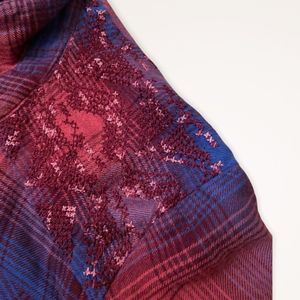LUCKY BRAND Boho Embroidered Plaid Tunic Shirt