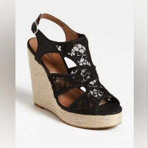 LUCKY BRAND Crochet Cut Out Riedel Ranette Wedge Sandals- Black