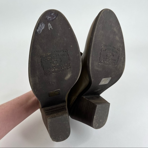 LUCKY BRAND Ethann Deep Taupe Leather Fold-over Pirate Bootie Block Heels Bootie