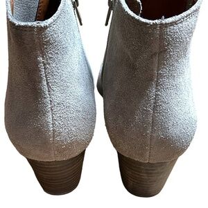 LUCKY BRAND Genuine Suede Leather Beige Ankle Booties Stacked 2.5” Heel US Sz 10