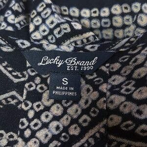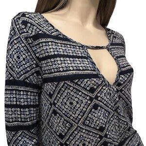 LUCKY BRAND Geometric Boho Blouse Top Shirt Plunge V-Neck Cutout Keyhole Rayon