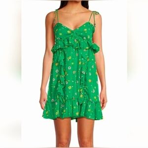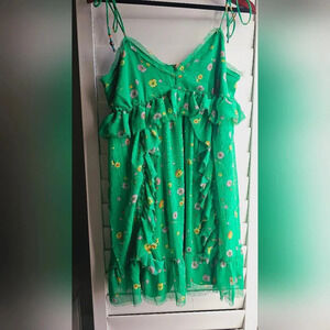 LUCKY BRAND Green Spagetti Straps Mini Floral Dress Lined size XL