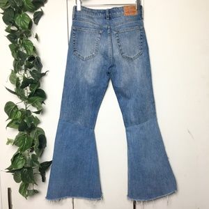 Tags: Blue Light Medium Wash High Rise Cropped Bell Bottom Leg Slit Denim Casual Trendy