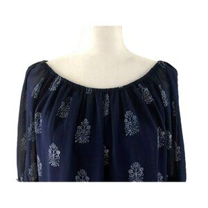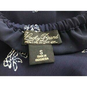 LUCKY BRAND Live in Love Boho Off The Shoulder Blouse Top Size Small Navy Blue