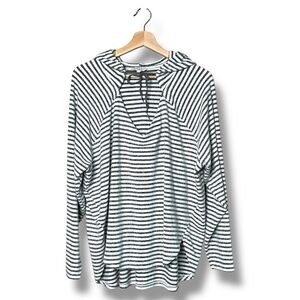 LUCKY BRAND Super Soft Grey / Cream Striped Hoodie Long Sleeve US Sz L