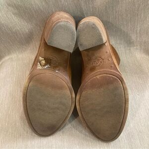LUCKY BRAND Sz 6 Distressed Stacked Heel Tulip Top Leather Ankle Booties. Perfect for festival or rodeo season. Perfect combo between shine and distressed. Trendy and fun.