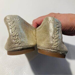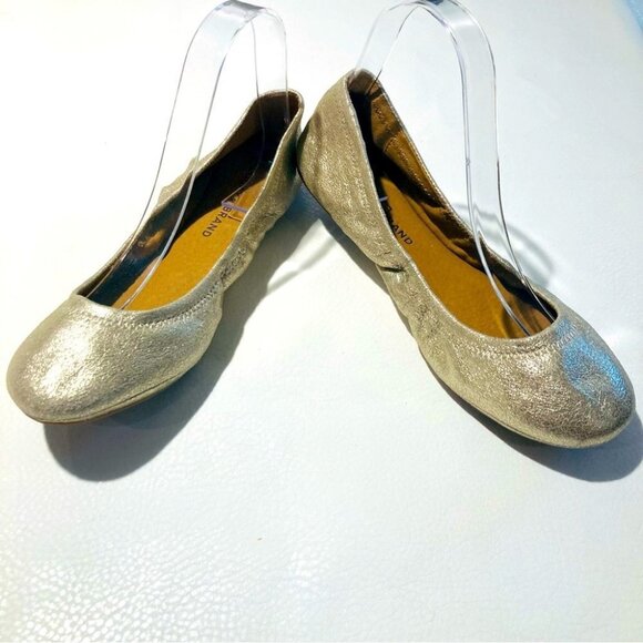 LUCKY BRAND Sz 8 Gold Ballet Elasticized Sides for Comfort Fit Slip On Flats NWT