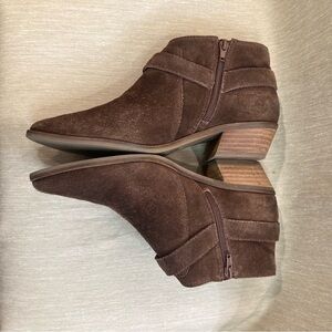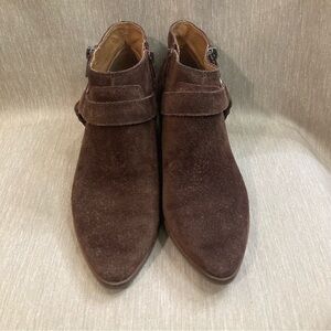LUCKY BRAND Sz 8 LK-Enitha Faux Suede Buckle Harness Stacked Western Vibe Heels Booties. Super cute. Perfect with jeans. Ready for the festival, the rodeo or because you want to feel fabulous.