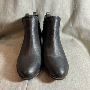 LUCKY BRAND Sz 8 Pewter Colour Pointy Toe Zipper Closure Stacked Heel Booties